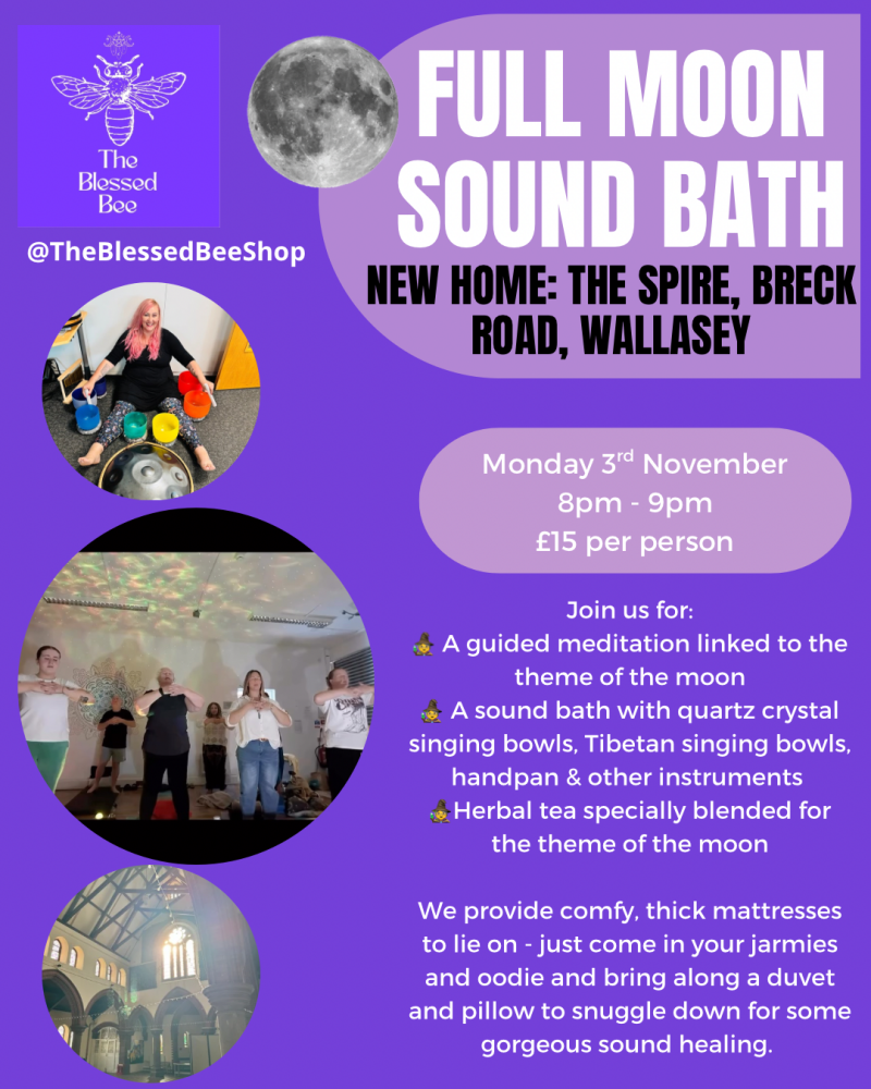 This is our digital notice board where you can find out about the upcoming events at The Blessed Bee. If you'd like to book on to any of our events, please contact us on our socials.